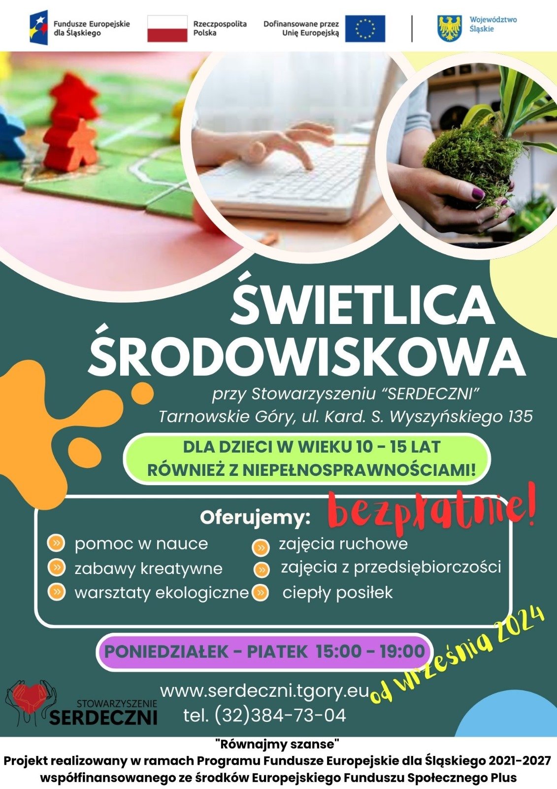Stowarzyszenie Serdeczni z siedzibą w Tarnowskich Górach ogłasza nabór do świetlicy środowiskowej dla dzieci i młodzieży z terenu miasta Tarnowskie Góry w wieku 10-15 lat, w tym również z